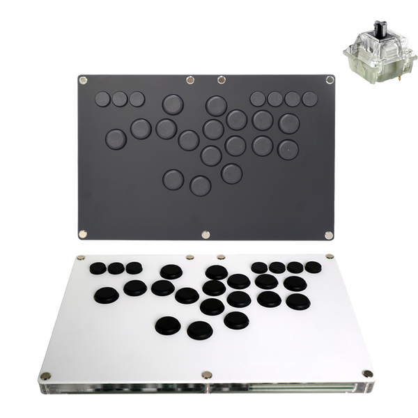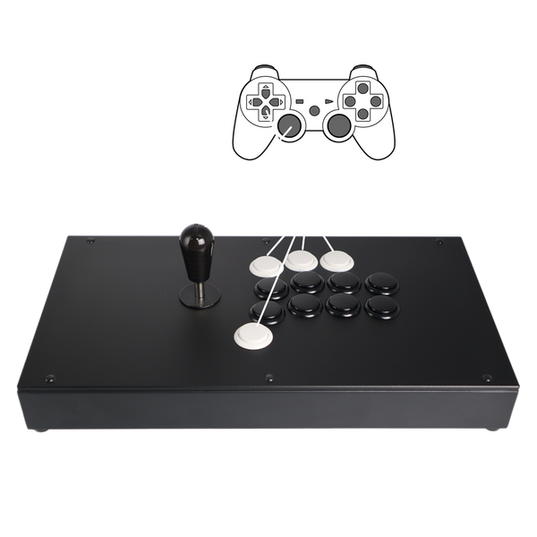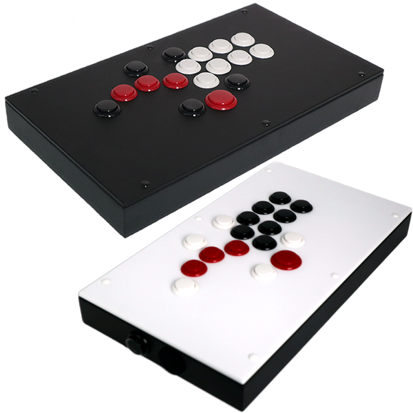 Traditional arcade joystick size, metal case, frosted matte acrylic panel