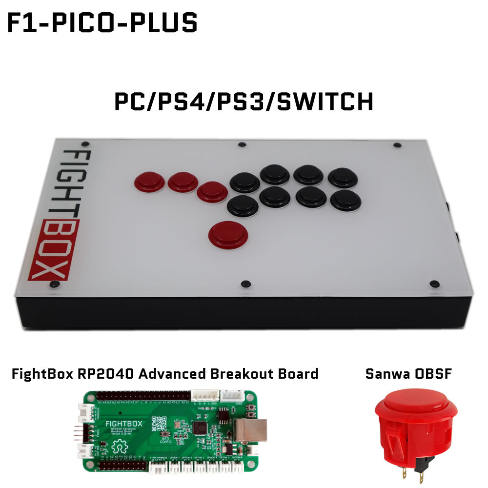 The FightBox F-PICO-PLUS uses the FightBox RP2040 Advanced Breakout Board, Zero Delay Arcade Joystick Controller Board, based on the latest Raspberry Pico and the latest firmware. A combination of multiple button layouts and buttons, keyboard keys, support PC/PS4/ PS3/SWITCH.