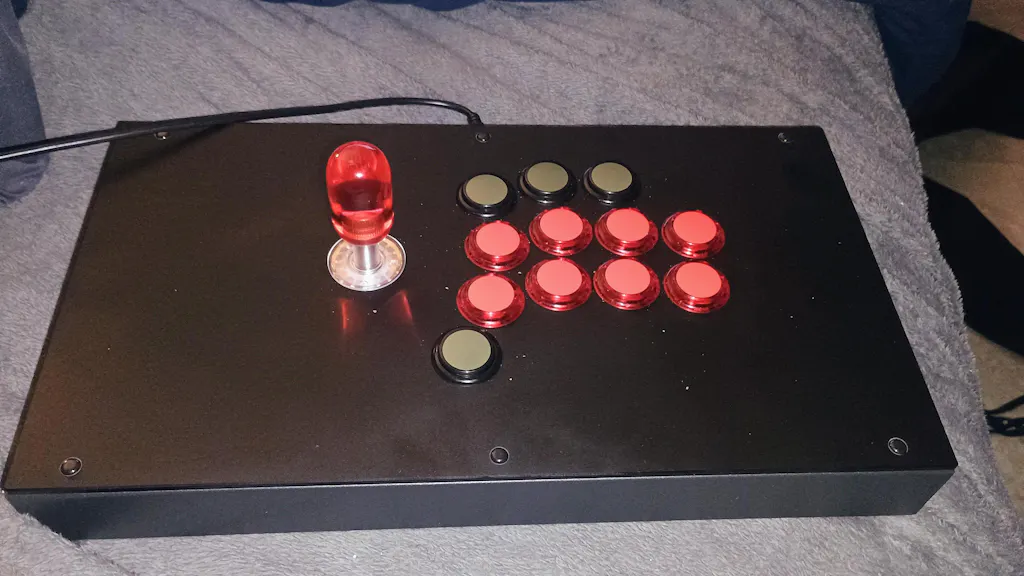 The FightBox M8-CrossUP-NEO-Edition has a Samducksa Knee Lever - Neo Edition joystick and 8 Crown/Samducksa SDB-203C 30mm buttons, same as traditional joystick, but it has 4 additional Crown/Samducksa SDB-203C 30mm buttons as extra directional keys. The default joystick will be done as the controller's LS (Left Stick) and the additional buttons will be done as DP (D-pad), following the SOCD rules between them. You can also set the additional buttons as other function buttons, via Web Configurator(PICO-PLUS version).
