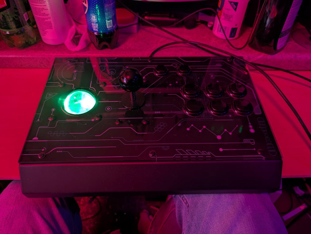 The Arcade Joystick has considerable heft and rubber feet, both of which work to hold the controller firmly in place on hard flat surfaces.